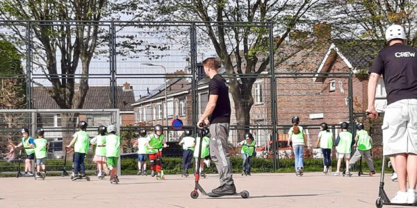 Op het plein bij het Dorpshuis Op Moer in Moerkapelle, was het gisteren feest voor zo’n 120 kinderen die, onder een stralende zon, een stuntsteples kregen van tweevoudig Nederlands-Belgisch kampioen stuntsteppen: Tim van Kleef. Samen met een andere instructeur ging…