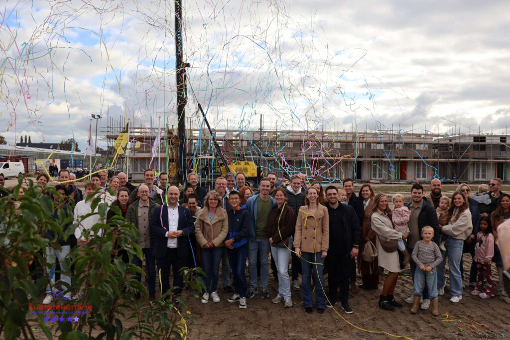 De toekomstige bewoners verzamelden zich op de bouwplaats aan het einde van de Koningsspil, waar de middag begon met een welkomstwoord. Na het officiële moment van de eerste paal schoot er een wolk van kleurrijke confetti de lucht in, gevolgd door een gezamenlijk fotomoment met de wethouder. In zijn toespraak wenste Schuurman de nieuwe bewoners veel geluk in hun toekomstige huizen, die naar verwachting volgend jaar worden opgeleverd.
