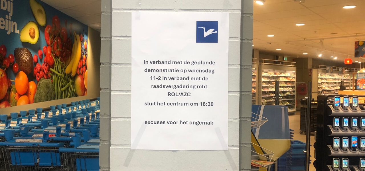 Bij winkelcentrum Reigerhof hangen mededelingen dat het winkelcentrum vanaf 18.30 uur sluit. In deze aankondigingen wordt gesproken over een geplande demonstratie, maar deze informatie wordt niet bevestigd door de gemeente Zuidplas.
