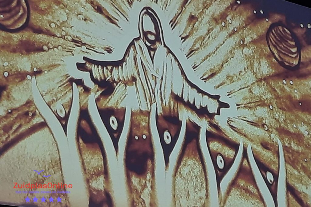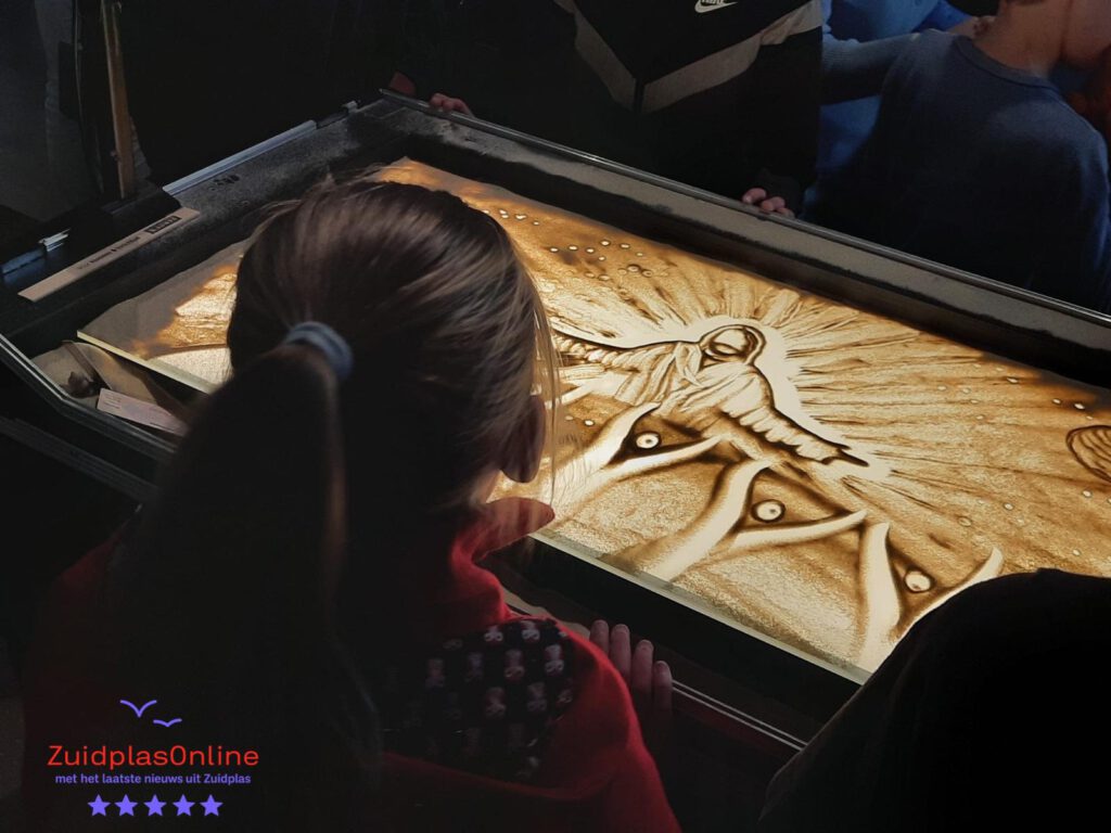 Rosa doet dit werk sinds 2015 en vertoont haar kunsten in binnen-en buitenland. Zij is een van de weinigen in Nederland die dit vak uitoefent. Ze heeft het niet van een vreemde. Haar vader Gert van der Vijver is zandkunstenaar, ook wel bekend als de Zandtovenaar, en heeft haar de fijne kneepjes van het zandschilderen geleerd. In het geluidsfragment vertelt ze daar iets meer over. Na afloop kwamen jong en oud eens kijken bij de lichtbak waar het zand op lag hoe het er nou precies uitzag wat zij op het grote scherm hadden gezien. Een bezoeker na afloop:” Wat was dit mooi om te zien, wat deze zandkunstenares maakt vind ik nou echte kunst.”