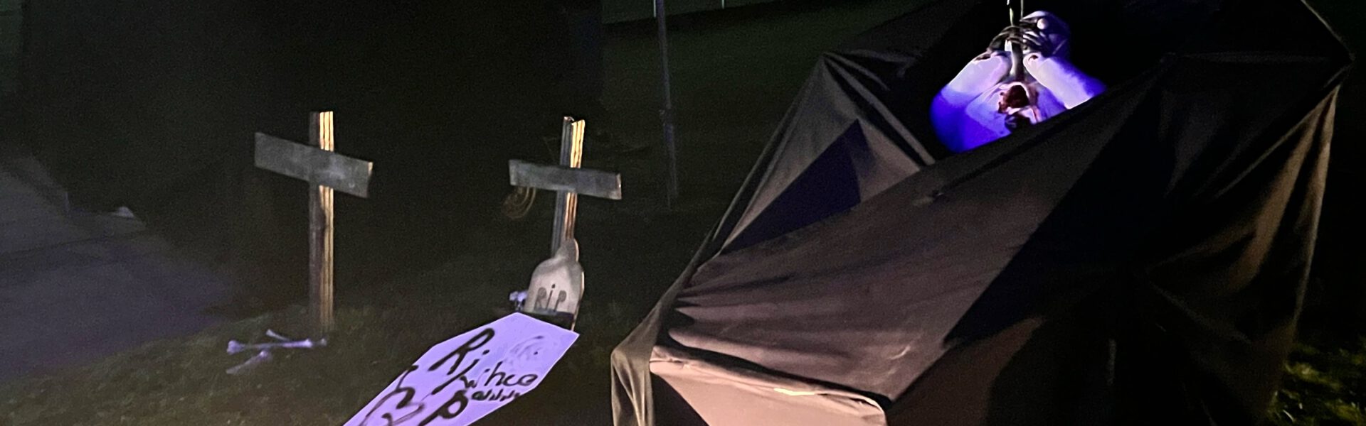 De Parkzoomhal in Nieuwerkerk aan den IJssel stond vrijdagmiddag en -avond volledig in het teken van Halloween. Sportstichting Zuidplas en Stichting Evenement organiseerden samen een griezelfestijn voor jong én oud, met verschillende themaruimtes in en rond de sporthal en zo’n dertig vrijwillige acteurs.