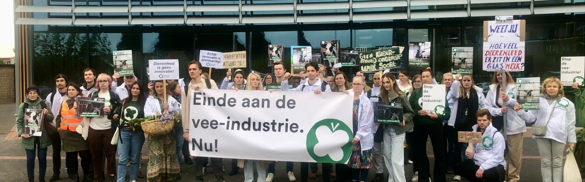 Partij voor de Dieren protesteert bij kalverslachterij in Nieuwerkerk: “Liever een dak boven je hoofd dan een biefstuk op je bord”