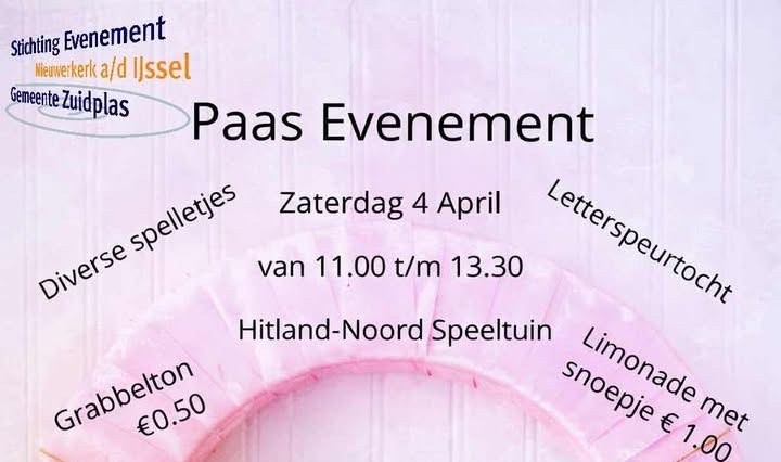 In speeltuin Hitland‑Noord wordt op zaterdag 4 april een paasevenement georganiseerd voor kinderen en hun families. Het evenement vindt plaats van 11.00 tot 13.30 uur en is een nieuwe activiteit van Stichting evenement.
