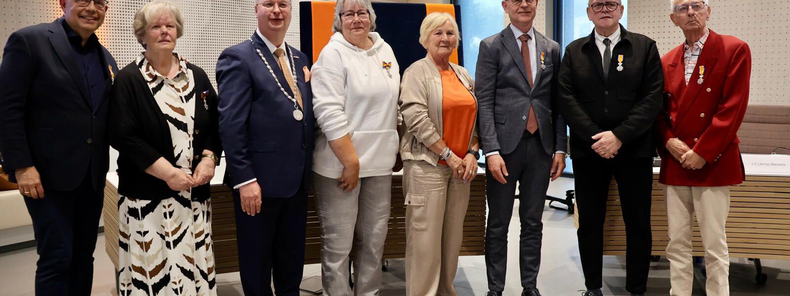 Ook deze gedecoreerden werden onder valse voorwendselen naar het gemeentehuis gelokt en daar in het zonnetje gezet vanwege hun langdurige en bijzondere inzet voor de samenleving.