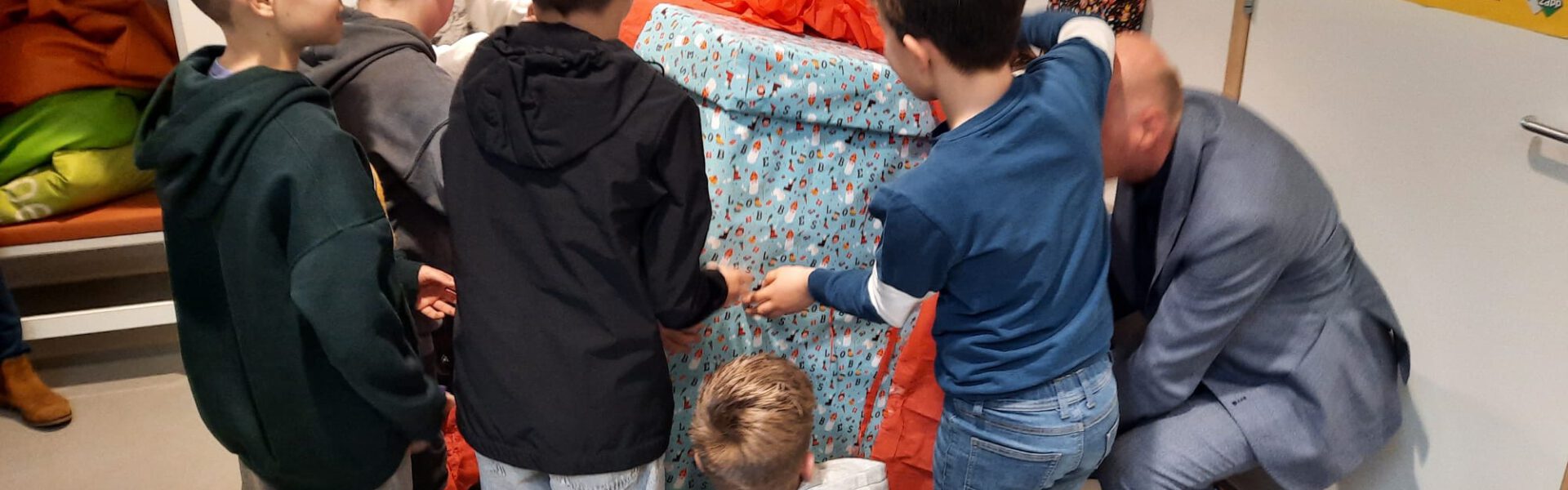 En Charlie ter Reegen benadrukte nog eens dat het een prachtig eindresultaat was geworden. Reaven Kouwenhoven en Joah Sneep, beiden uit groep 8 hebben, van de taart die ze na de opening kregen, genoten. Want taart hoort nu eenmaal bij feest, en zulke mooie lokalen is een feestje waard.